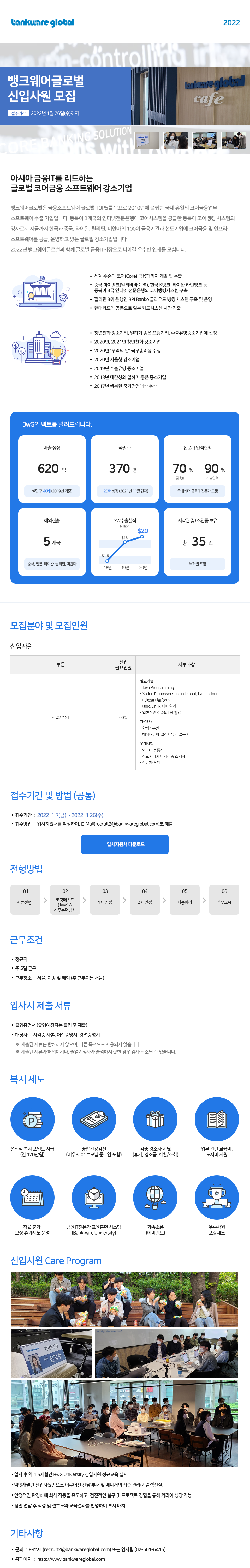주소 : 서울특별시 중구 서소문로 11길 19 정동 34-5 배재정동빌딩 B동 12층 전화 : 02-501-6415 | IR문의: 070-4473-1756 | Fax : 02-501-6416 E-mail : contact@bankwareglobal.com